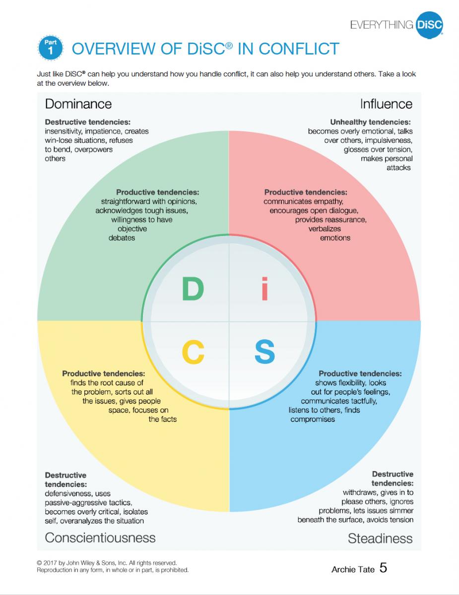 Everything DiSC® Productive Conflict helps participants improve self-awareness around conflict behaviors. Rather than focus on a step-by-step process for conflict resolution, Everything DiSC Productive Conflict provides participants with techniques to curb destructive behaviors and effectively respond to conflict situations. The program features an exploration of DiSC® in a conflict context, provides an opportunity for participants to explore their destructive conflict responses, and offers them a method for making more productive choices in their response to conflict.